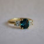 Center Stone: Natural 1.76 carat rich teal Montana Sapphire